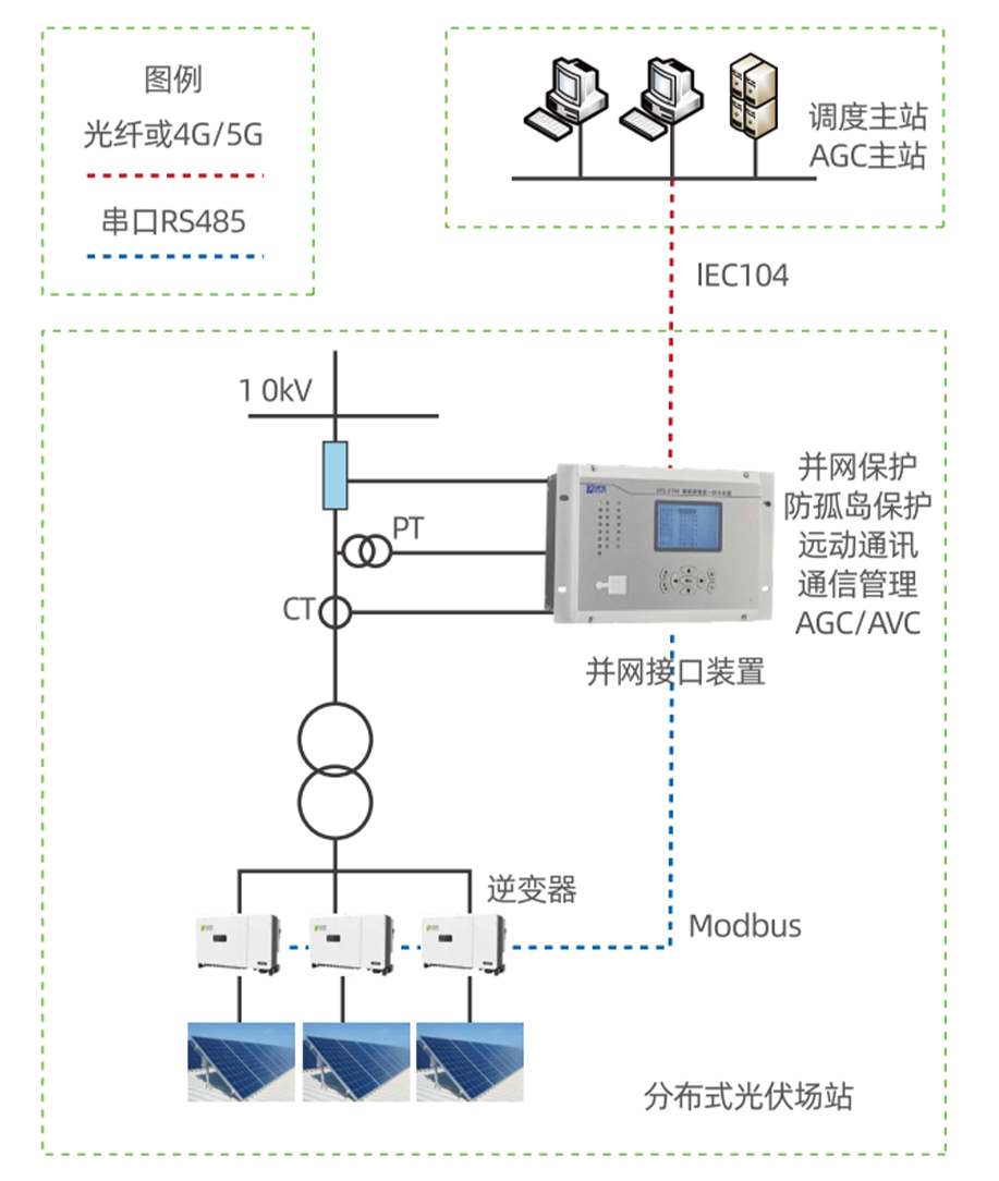 适用于全电压等级和装机容量的新能源场站,融合新能源发电的保护、测控、运行控制、功率控制、电能质量监测、通信管理、远动、信息安全加密等功能,实现分布式光伏电站内故障隔离和调度主站端对分布式新能源发电系统的可观、可测、可调、可控。
